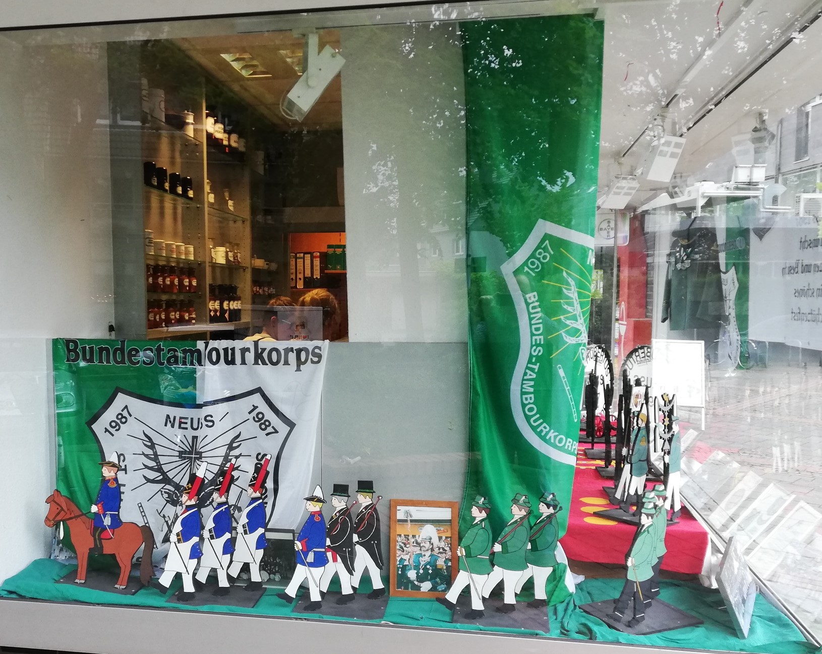Unser Schaufenster in der St. Cosmas Apotheke auf der Kaarster Straße anlässlich des Further Schützenfestes 2019. Damit haben wir den 1. Platz gemacht.