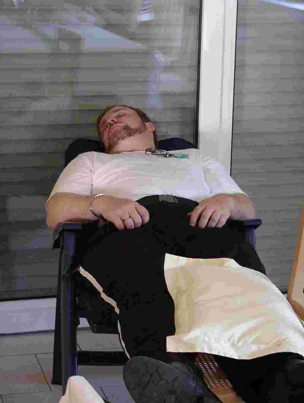 Eh, lass mir auch noch was übrig!! | Wo bleibt denn der Premiere Decoder? | Siesta nach einem guten Essen |