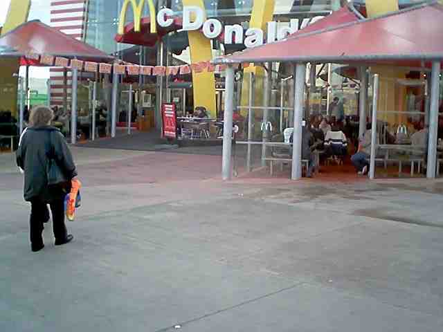 Wir verlassen das Studiogelände, | und gehen zurück ins Village. | Ist denn das der Weihnachtsmann? |