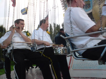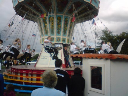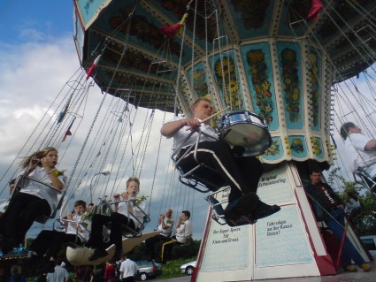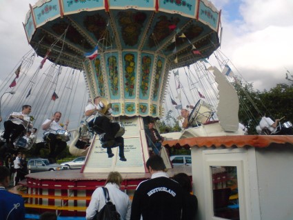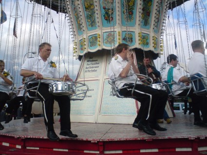 Das ist der Knüller zu guter letzt. Ein komplettes Tambourkorps auf einem Kettenkarussell. Gespielt wurde natürlich auch.
