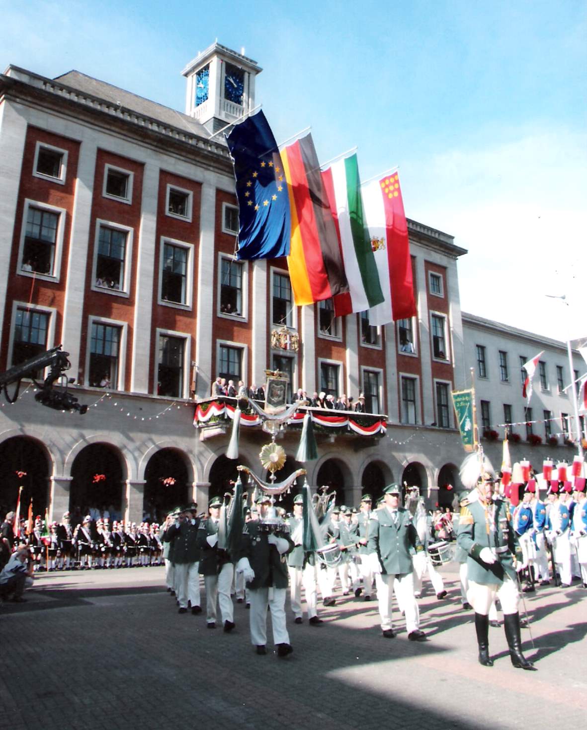 Insbesondere der Ablauf der Parade am Sonntagmorgen aus Sicht des Hubertustambourkorps.
