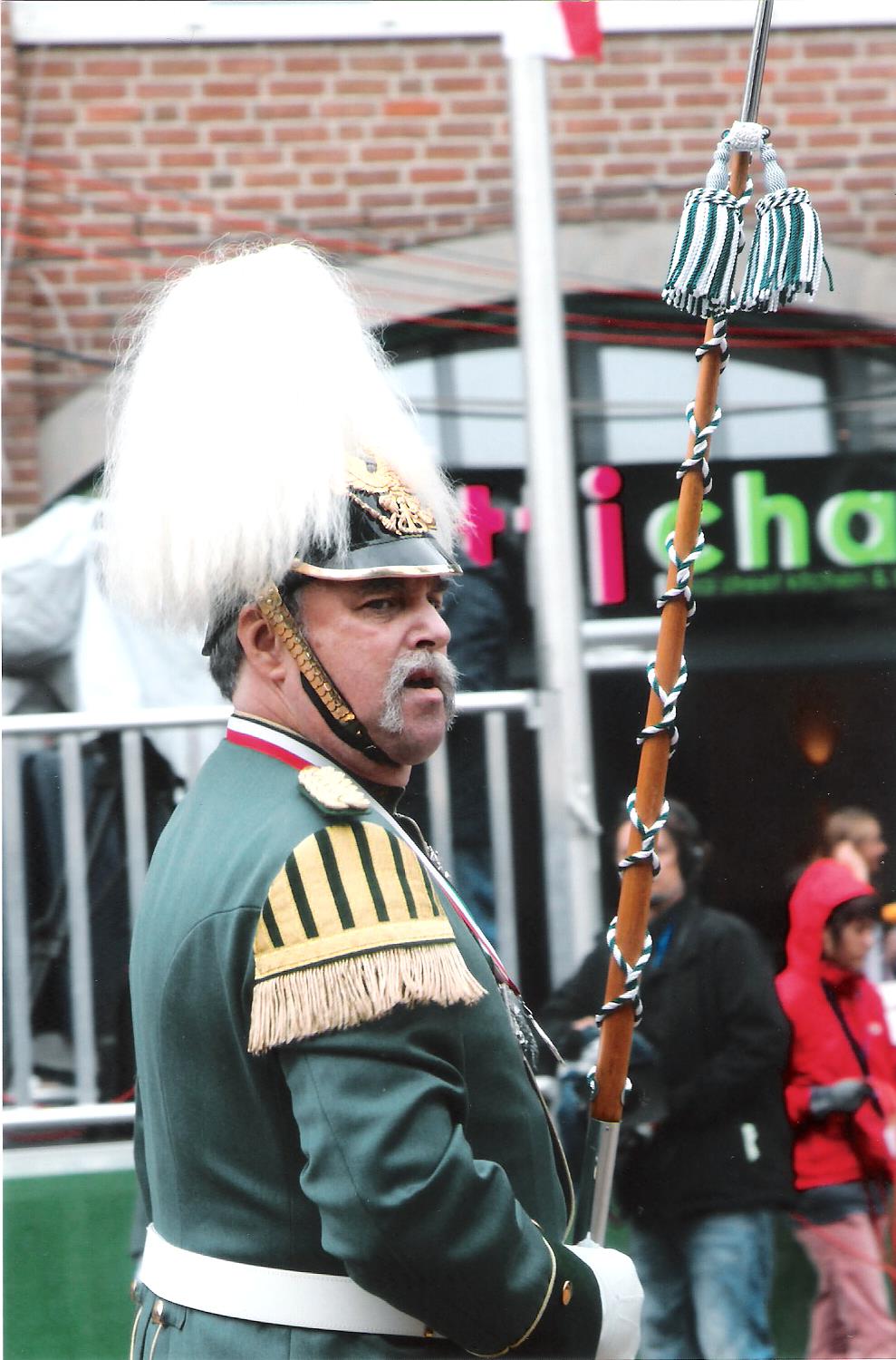 Der Schellenbaumträger folgt ohne zu wackeln und voll konzentriert | Ernste Blicke zeugen von voller Konzentration |