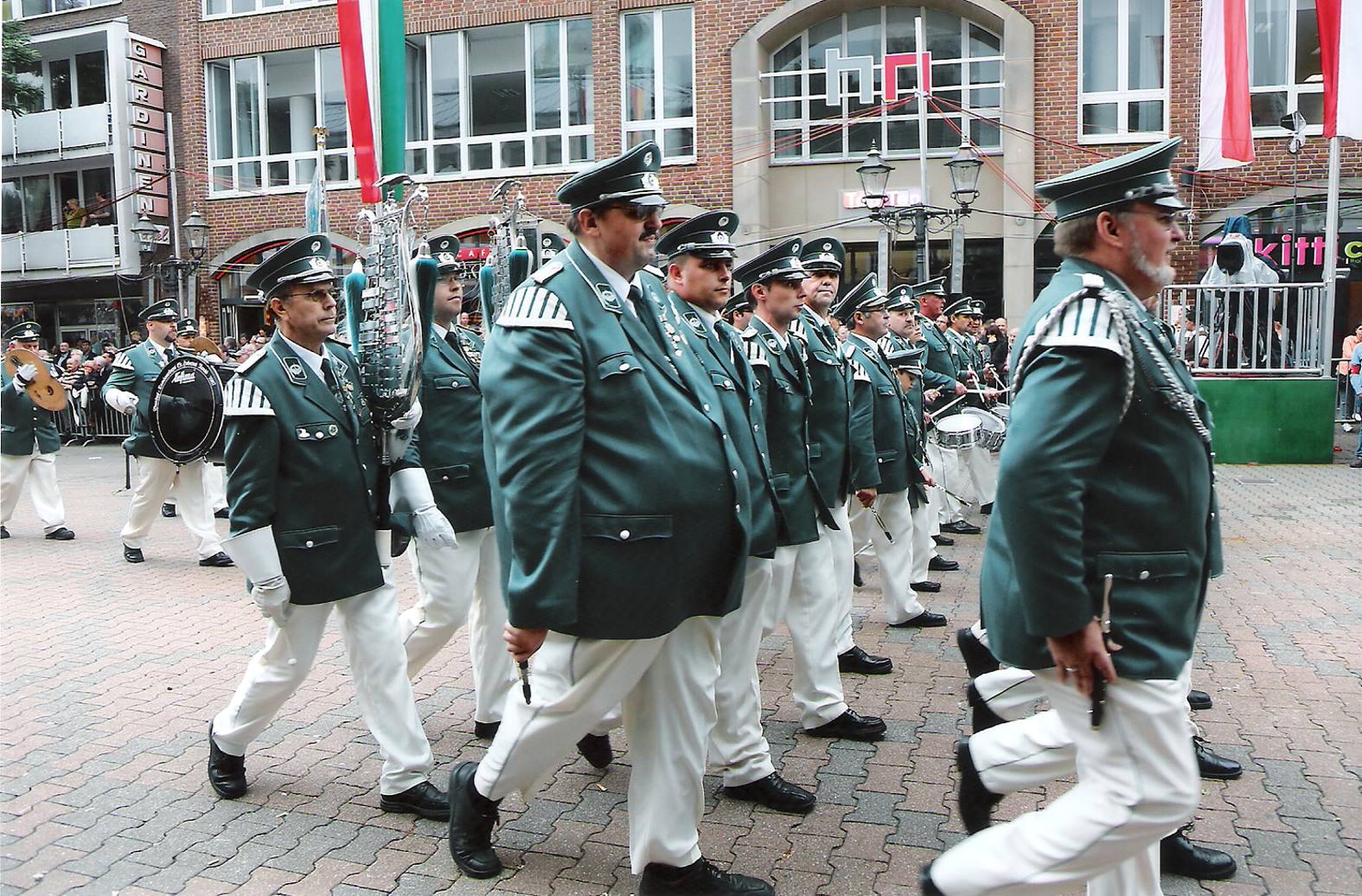 Die komplette 1. Musikabteilung der St. Hubertus-Schützen-Gesellschaft Neuss 1899 e.V.