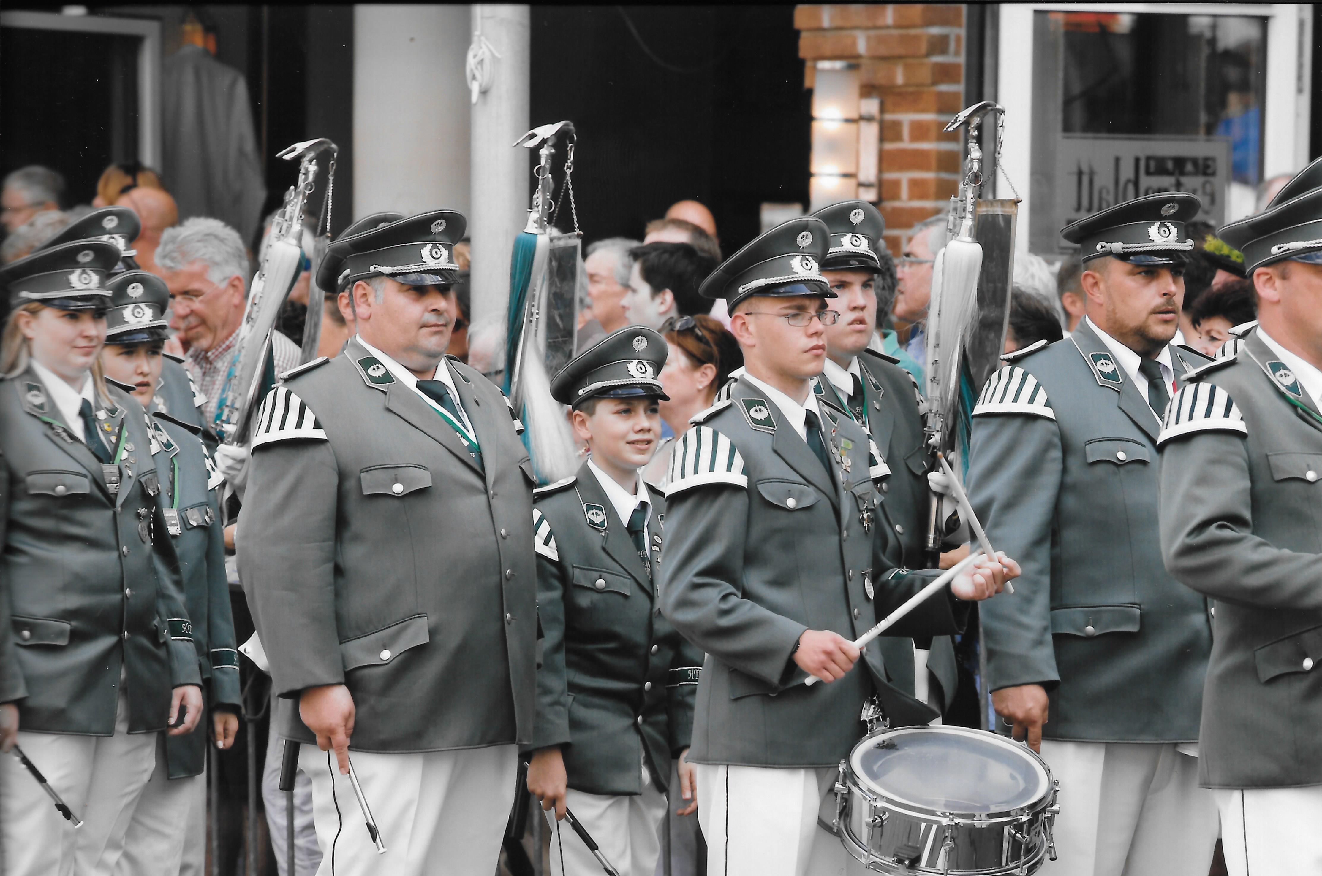 Die komplette 1. Musikabteilung der St. Hubertus-Schützen-Gesellschaft Neuss 1899 e.V.