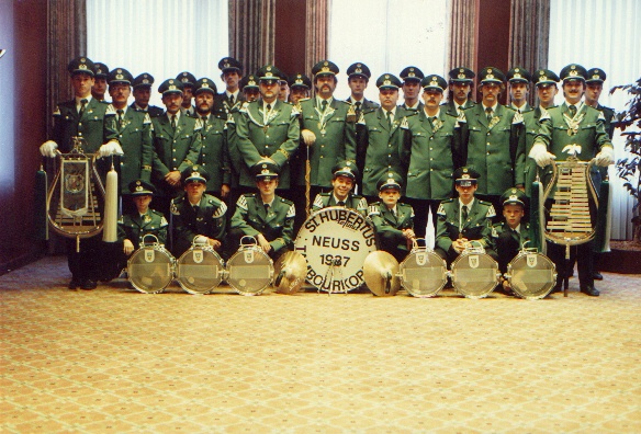Gruppenbild im Swissotel 1989 beim Patronatstag der Neusser Hubertusschützen | Aufnahme beim Aufmarsch zur Königsparade beim Neusser-Bürger-Schützenfest im Jahre 1990. |