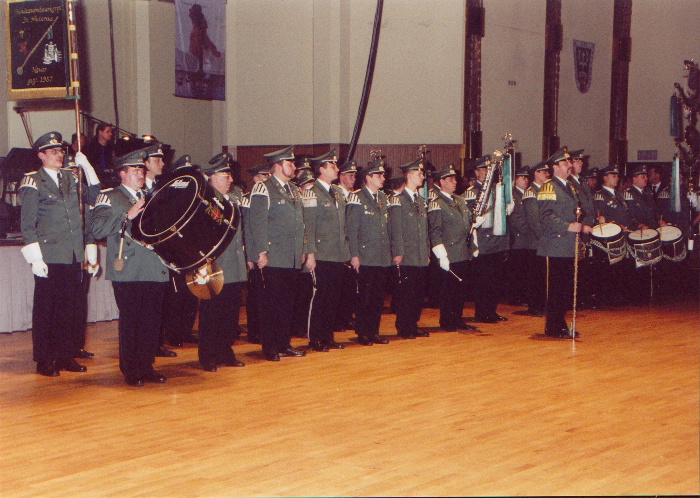 Es war einmal! Der Hubertusball 2001 im Neusser Swissotel. Das Tambourkorps kurz vor dem Einmarsch des Hubertuskönigs in den Saal.