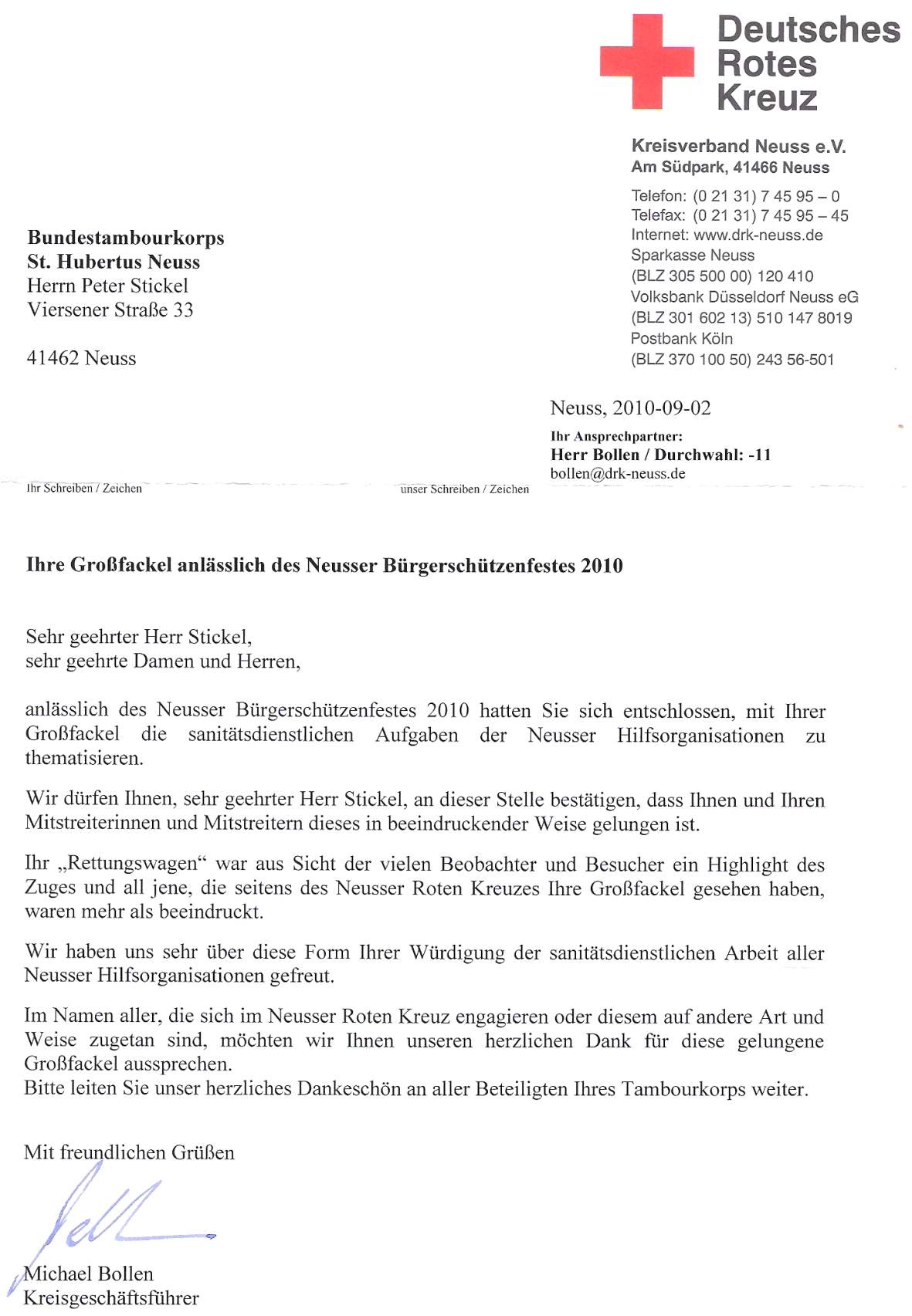 Die 13. Fackel im Jahr 2009: "Thomas, die Lokomotive". | Die 14. Fackel im Jahr 2010: "HTK dankt 112" |